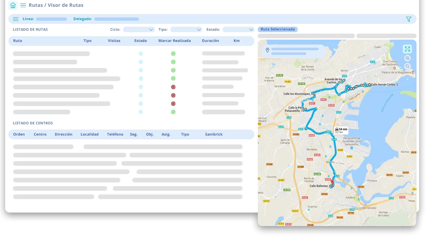 Itineraries are adjusted in real time according to changes in priorities or completed visits, reducing unnecessary travel and avoiding overloads in the schedule.